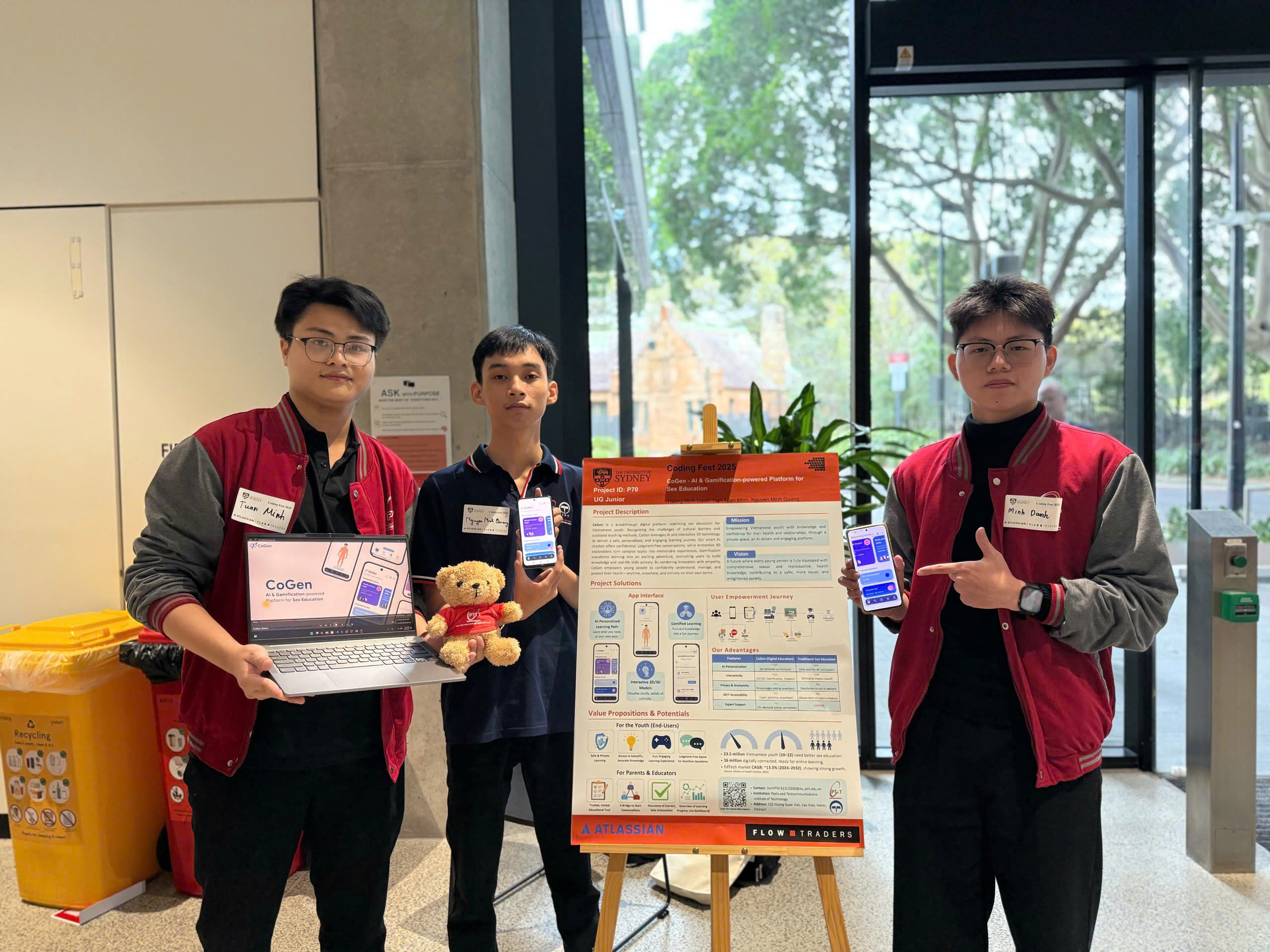 Một điểm nhấn quan trọng là dự án CoGen – nền tảng giáo dục giới tính ứng dụng AI và Gamification do nhóm sinh viên PTIT phát triển đã ghi dấu mạnh mẽ khi lọt Top 2 hạng mục “Siêu tân tinh khởi nghiệp” trong tổng số 54 dự án sinh viên gửi về chương trình. CoGen được đánh giá cao nhờ tính sáng tạo, khả năng mở rộng và định hướng ứng dụng công nghệ phục vụ giáo dục toàn diện.