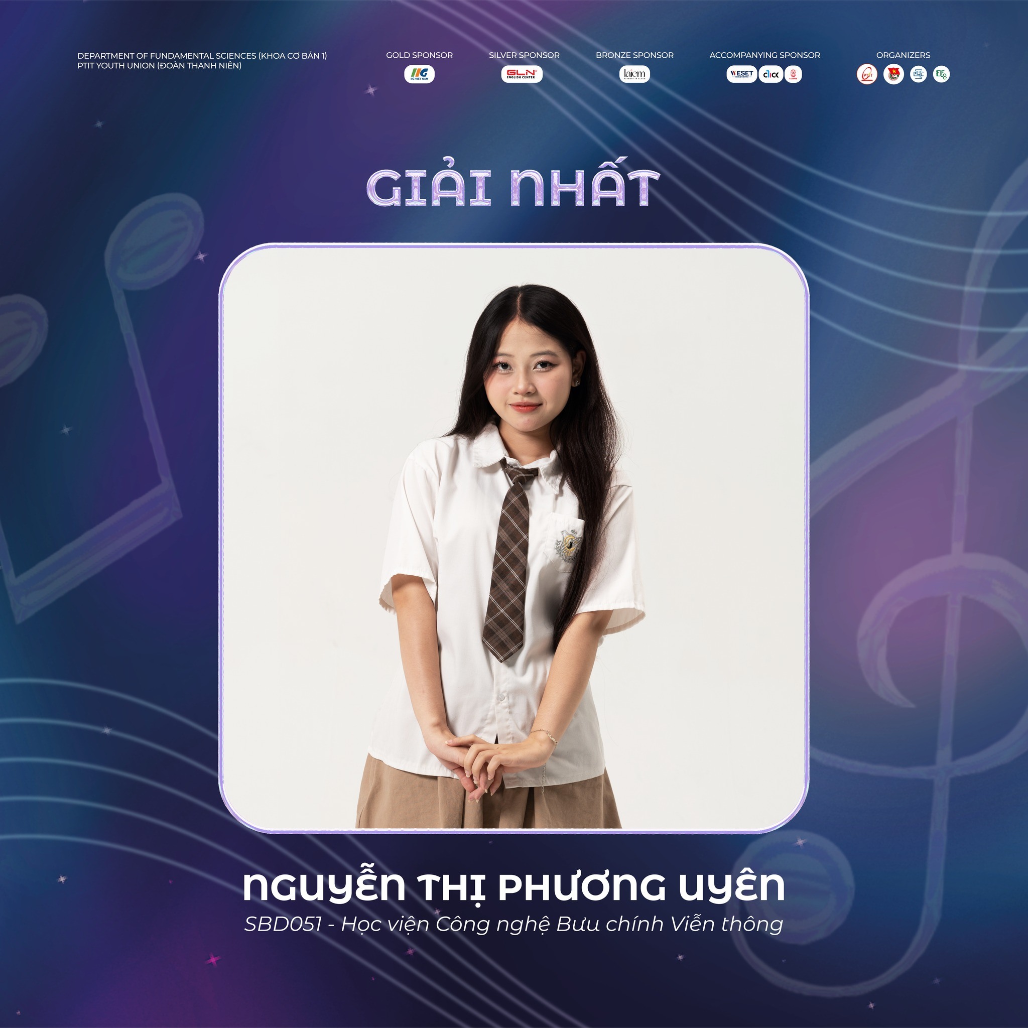 Trong khuôn khổ các hoạt động đổi mới phương pháp học tập và tăng cường trải nghiệm sáng tạo dành cho sinh viên, Học viện Công nghệ Bưu chính Viễn thông đã tổ chức cuộc thi “Sing to Learn PTIT” nhằm khuyến khích sinh viên tiếp cận kiến thức theo những hình thức mới, kết hợp hài hòa giữa học tập chuyên môn và hoạt động nghệ thuật. Cuộc thi không chỉ tạo ra một sân chơi học thuật – sáng tạo dành cho sinh viên toàn Học viện mà còn góp phần thúc đẩy tinh thần học tập chủ động, nâng cao kỹ năng thể hiện và khả năng vận dụng kiến thức trong môi trường đào tạo hiện đại. Tại đây, sinh viên Nguyễn Thị Phương Uyên, ngành Kế toán, đã đạt Giải Nhất, ghi nhận kết quả học tập, rèn luyện và tham gia tích cực các hoạt động do Học viện tổ chức.